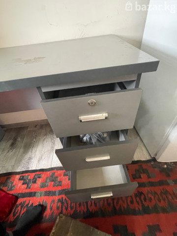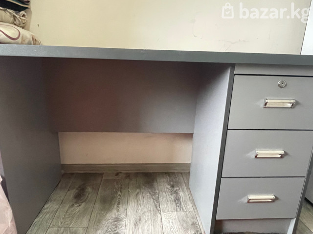 Продаю письменный стол с тумбой Удобный и практичный стол в хорошем состоянии. Подойдёт для дома, учёбы или работы. Есть встроенная тумба с 3 выдвижными ящиками — удобно хранить документы, тетради и мелочи. ✔️ Цвет: серый ✔️ Компактный, но вместительный ✔️ Прочная конструкция ✔️ Есть небольшие следы использования (видно на фото), на работу не влияет 📏 Подойдёт для школьника, студента или офиса