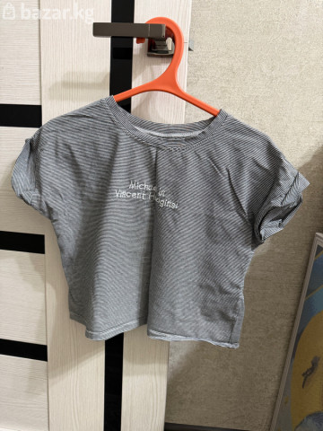 1) плащ в очень хорошем состоянии, качество отличное. Черного цвета, на полнии и заклепках, есть пояс, карманы и высокое горло. Размер 44-46 Цена 2000, покупателю уступлю 2) топ, укороченная футболка, очень легкая. На лето/весну. В полоску серого цвета, подходит для девочек 10-14 лет Цена 500