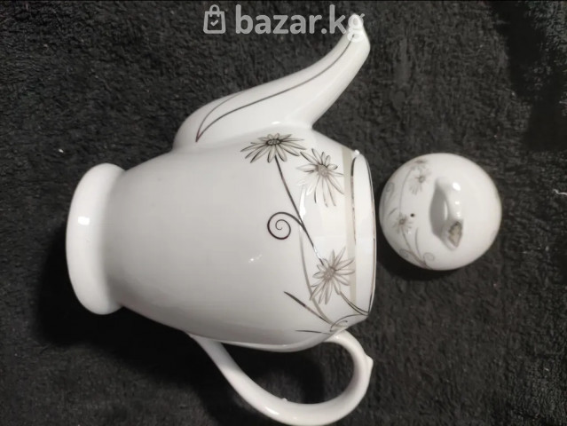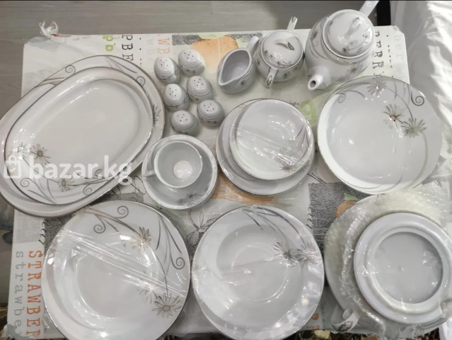 Продаю новый столово-чайный сервиз на 6 персон. Произведен в Иране на престижном заводе фарфоровых изделий. В упаковке. На белом форфоре серебряные веточки с цветком.