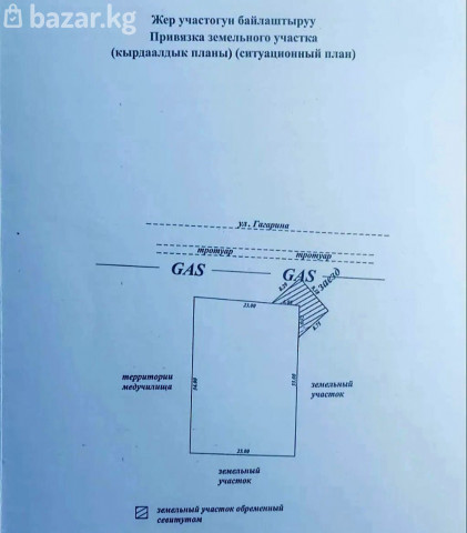 Продаю участок площадью 7,7 соток в городе Токмок, по улице Гагарина. Участок правильной формы (22мх34м). Имеется Красная книга, назначение - ПОД КОММЕРЧЕСКУЮ ЗАСТРОЙКУ, ЗОНА С1. Огорожен капитальным забором, удобные подъездные пути, рядом производственные и складские базы, административное здание, в 100 метрах от участка находится РОДИЛЬНЫЙ ДОМ, ГОРОДСКАЯ БОЛЬНИЦА. ЦЕНА: 110 000$ Тел: 0555200540, 0703200540