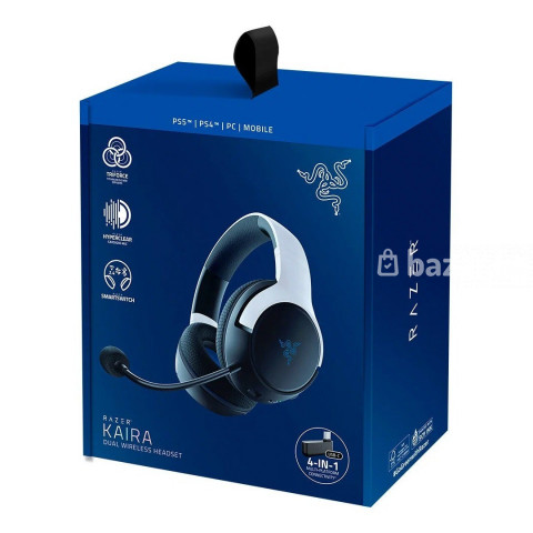Отличное решение для PS5 и смартфонов! Razer Kaira for PlayStation — это беспроводные наушники для PlayStation с двумя вариантами подключения и технологией SmartSwitch. Устройство поддерживает радиочастотное соединение с диапазоном 2,4 ГГц и Bluetooth-технологию, а еще эта гарнитура прекрасно совместима со смартфонами. Динамики Razer TriForce Это большие 50-миллиметровые динамики, которые сделаны из трех основных компонентов. Каждый из них отвечает за свой диапазон частот: высокие, средние и низкие. Такое разделение позволяет наушникам воспроизводить качественный звук с мощным басом, который поможет вам лучше ориентироваться даже в самых сложных раундах и получать еще больше удовольствия от игры. Микрофон Razer HyperClear Ваше общение с тиммейтами без всяких проблем — главная задача микрофона Razer HyperClear, с которой он справится на отлично! Устройство хорошо блокирует шумы сзади и по бокам, а также четко и громко воспроизводит голос. С этим микрофоном вас будет слышно вот прямо хорошо и ваши тиммейты сразу же это оценят! Технология Razer SmartSwitch Еще одна важная особенность Razer Kaira для PlayStation заключается в том, что наушники поддерживают одновременное подключение через радиочастотный передатчик и Bluetooth. Вы сможете играть на своей консоли и в то же время принимать входящие звонки со своего смартфона. А еще, в гарнитуре предусмотрена специальная кнопка для переключения между аудиоисточниками, соединенными при помощи HyperSpeed Wireless (радиочастотное подключение) и Bluetooth — это главная функция SmartSwitch. И, кстати, если вы хотите отключить прием звонков, то для этого включите режим “Не беспокоить” в приложении Razer Audio. Приложение Razer Audio Для настройки Kaira for PlayStation используется приложение Razer Audio. Это удобная программа с простым интерфейсом, при помощи которой можно настроить эквалайзер, проверить заряд аккумулятора, включить режим “Не беспокоить” (чтобы заблокировать приём входящих звонков с вашего смартфона) и прочее. Ну вот прямо очень удобно. Особенности: — Динамики Razer TriForce диаметром 5 см. — Гибкий микрофон HyperClear с кардиоидной направленностью. — Технология Razer SmartSwitch позволяет переключаться между радиочастотным и Bluetooth-соединением. — Мягкие амбушюры Razer FlowKnit, которые наполнены “запоминающей” пеной. Технические характеристики Основные: — Частотный диапазон: 20 Гц — 20 кГц. — Показатель сопротивления (1 кГц): 32 Ома. — Показатель чувствительности (1 кГц): 108 дБ. — Динамики: неодимовые, диаметром 5 см. — Размеры амбушюр: 6,5 x 4,5 см. — Особенности амбушюр: овальные, хорошо пропускают воздух и полностью закрывают уши. — Подключение: радиочастотное (используется ресивер с коннектором USB-C) и Bluetooth. — Беспроводная дистанция (оба варианта соединения): 10 м. — Диапазон радиочастотного подключения: 2,4 ГГц. — Автономность аккумулятора: до 30 часов. — Микрофон: — Тип: кардиоидный. — Направленность: однонаправленный. — Частотный диапазон: 100 Гц — 10 кГц. — Соотношение сигнала и шума: более 60 дБ. — Показатель чувствительности (1 кГц): -54 ± 3 дБ. — Особенности: гибкий, несъемный. — Регулятор громкости: есть (все элементы управления находятся на одной из раковин наушников). — Вес: 332 г. — Гарантийный срок: 12 месяцев. Совместимые платформы: — Консоли PS4 и PS5. — Обычные компьютеры. — Смартфоны и другие гаджеты, которые поддерживают аудиопередачу через Bluetooth. Общие характеристики Тип беспроводные наушники Конструкция п