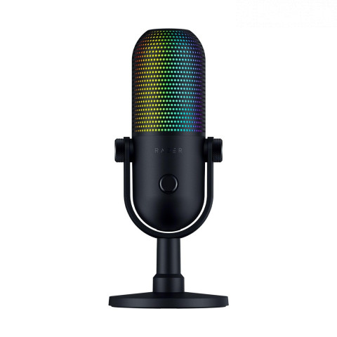 Razer Seiren V3 Chroma — конденсаторный USB-микрофон профессионального уровня с непревзойденной настраиваемой RGB-подсветкой. Реагирующая на события трансляции подсветка и многофункциональный сенсор выключения звука касанием обеспечат вам необходимый контроль, чистоту звучания и уникальный стиль для игры, трансляций и общения. НА БАЗЕ RAZER CHROMA RGB. РЕАГИРУЮЩАЯ НА СТРИМ И ИГРУ ПОДСВЕТКА. ПОГРУЖЕНИЕ И ВЗАИМОДЕЙСТВИЕ СЛЕДУЮЩЕГО УРОВНЯ. Придайте своим трансляциям невероятную зрелищность и создайте эффект погружения благодаря подсветке, которая не только работает с играми с поддержкой Chroma, но и реагирует на события во время трансляции, например смайлики, оповещения и многое другое. КРУПНЕЙШАЯ В МИРЕ ЭКОСИСТЕМА ПОДСВЕТКИ ДЛЯ ИГРОВЫХ УСТРОЙСТВ И ИНТЕРЬЕРНЫХ РЕШЕНИЙ. СИНХРОНИЗИРОВАННАЯ CHROMA-ПОДСВЕТКА. Испытайте непревзойденные возможности настройки RGB с 16,8 миллионами цветов и множеством уникальных световых эффектов. Совместимость с более чем 50 сторонними партнерами, включая Govee, Yeelight, Philips Hue, Nanoleaf, Twinkly и другие. — МНОГОФУНКЦИОНАЛЬНЫЙ СЕНСОР ОТКЛЮЧЕНИЯ ЗВУКА. Мгновенный и интуитивный контроль. Просто коснитесь верха микрофона, чтобы случайные звуки не попали в эфир во время игры, общения или трансляции. Назначьте командам двойного и тройного касания функции регулировки подсветки и включения цифрового ограничителя усиления микрофона. — Однократное нажатие — для отключения звука. Многократное нажатие — для переключения эффектов подсветки. Длительное нажатие — для регулировки громкости мониторинга и громкости микрофона. Двукратное нажатие — изменение эффектов RGB подсветки Chroma. Троекратное нажатие — отключение эффектов RGB подсветки Chroma. — СУПЕРКАРДИОИДНЫЙ КОНДЕНСАТОРНЫЙ МИКРОФОН. ПРОФЕССИОНАЛЬНОЕ КАЧЕСТВО ЗВУКА. Вы будете звучать безупречно за счет высокой чувствительности микрофона, которая позволяет передавать голос более детально, и узкой диаграммы направленности, отсекающей посторонние шумы в помещении, например стук клавиш или щелчки кнопок мыши. ЦИФРОВОЙ ОГРАНИЧИТЕЛЬ УСИЛЕНИЯ И ВСТРОЕННЫЙ АМОРТИЗАТОР. ЧИСТОЕ И РОВНОЕ ЗВУЧАНИЕ. Благодаря автоматическому ограничителю усиления, шумоподавляющей конструкции и динамической подсветке, предупреждающей о чрезмерно высоком уровне громкости, вам не придется переживать, что ваш голос звучит слишком громко или с искажениями. РАСШИРЕННАЯ НАСТРОЙКА ЧЕРЕЗ RAZER SYNAPSE. Централизованное управление. Создайте оптимальную конфигурацию с помощью единой многофункциональной платформы. Настройте подсветку микрофона на свой вкус, задайте частоту дискретизации и битрейт студийного уровня, разбейте микс трансляции на отдельные микшеры громкости для фоновой музыки и самой трансляции, а также многое другое. ТЕХНИЧЕСКИЕ ХАРАКТЕРИСТИКИ: Особенности. — Реагирующая на игры и стрим RGB подсветка — Конденсаторный микрофон с капсюлем 16 мм — Суперкардиоидная диаграмма направленности — Многофункциональный сенсор отключения звука микрофона — Расширенная настройка звука в Razer Synapse Характеристики микрофона. — Частота дискретизации: 96 кГц — Битрейт: 24 — Капсюли: конденсаторный капсюль 16 мм — Диаграмма направленности: суперкардиоидная — Диапазон частот: от 20 Гц до 20 кГц — Требуемая мощность / энергопотребление: 5 В / 500 мА — Чувствительность: –34 дБ (1 В/Па при 1 кГц) — Макс. уровень звукового давления (