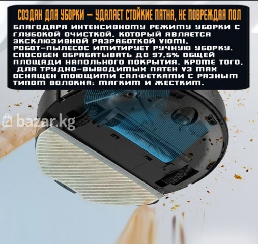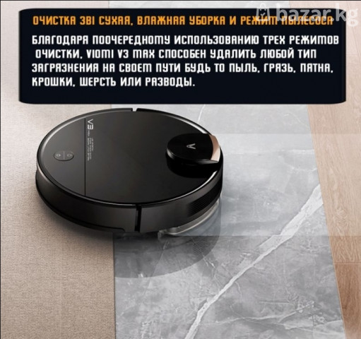 Уборка без лишних забот Xiaomi VIOMI V3 Max Vacuum Cleaner – новый робот-пылесос, который призван еще эффективнее наводить чистоту в вашем доме. Среди его преимуществ увеличенная до 2700 Па сила всасывания, улучшенное мытье полов, производительный четырехъядерный процессор A35 и новая система картографирования Map 2.0. А емкий аккумулятор мощностью 5200 Mah обеспечивает устройству до 5 часов автономной работы. Мытье до блеска Робот-пылесос умеет выполнять влажную уборку как отдельную манипуляцию или в комплексе с сухой. При активации алгоритма глубокой очистки он имитирует мытье полов вручную, охватывая 97,5% поверхности. Вдобавок, усовершенствованная тряпка с полосами из мягких и жестких волокон помогает лучше оттирать стойкие загрязнения на полу. Тихий и удобный Конструкция VIOMI V3 Max доведена до совершенства. Когда пылесос занимается наведением чистоты, он не будет мешать окружающим слишком громкой работой. При уборке в тихом режиме уровень шума не превышает комфортный показатель в 57 дБ, что немного тише работающей микроволновки. Также следует отметить опустошение пылесборника одним нажатием, благодаря чему вы не испачкаете руки.