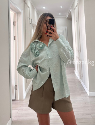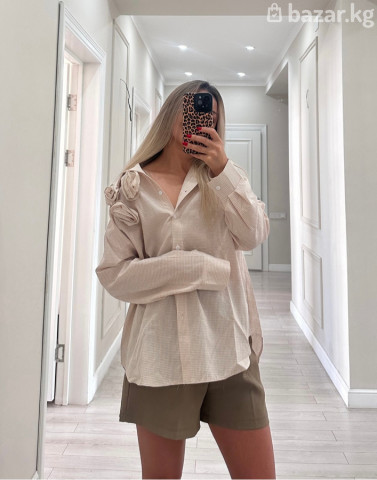 Нежная рубашка в мелкую клетку с декоративными розочками на груди 🌹 ▪️ Размеры М ▪️ Ткань хлопок