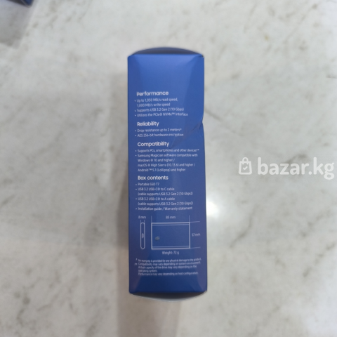 Оригинальный, новый, запечатанный. Упаковка помята (смотрите фото). Один из лучших портативных SSD накопителей в мире. Быстрый, надежный, компактный и при этом вместительный. Характеристики Емкость: 2 ТБ Форм-фактор: 1.8" Вид: портативный (внешний, переносной) накопитель Подключение к компьютеру: USB, USB 2.0-3.2 Gen 2 Type-A, Type-C Скорость чтения: до 1050 МБ/с Скорость записи: до 1000 МБ/с Поддержка технологий: шифрование данных, TRIM Материал корпуса: металл Высота: 8 мм Длина: 85 мм Ширина: 57 мм Вес: 72 г Комплектация: SSD Samsung T7, кабель USB Type C-> C, кабель Type C-> A Пожалуйста, прочитайте внимательно! Это не магазин. Я - частное лицо. Вещи у меня единичные. Нет гарантии, нет возврата, нет обмена. Времени на проверку не предоставляется. Проверка возможна при самовывозе или до отправки, после полной предоплаты (если доставка). Торг не уместен, все цены окончательные. По вопросам пишите на Ватсапп. Оставляйте именно текстовые сообщения, звонки и голосовые могут быть пропущены. Просьба, пишите с 9:00 до 21:00