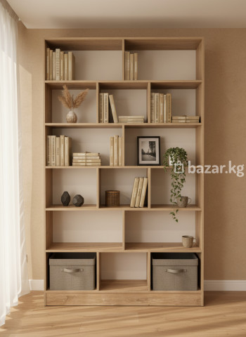 ✨ Стеллаж – Асимметрия Стиля и Максимум Функциональности 🌟 Описание товара Представляем вам современный стеллаж созданный для тех, кто ценит не только порядок, но и уникальный дизайн. Благодаря асимметричному расположению секций, этот стеллаж мгновенно станет центральным акцентом вашего интерьера. Выполненный в теплом и светлом оттенке натурального дуба он идеально подходит для создания уютной и современной атмосферы. Многообразие открытых полок и две нижние ниши для корзин позволяют вам организовать хранение, сбалансировав книги, декор и личные вещи. 📐 Характеристики: Характеристика Значение Габариты (ШхВхГ) 1200 мм x 2000 мм x 220 мм Материал Высококачественное ЛДСП Цвет Дуб Амберг натуральный Конструкция Асимметричный дизайн с 10 открытыми секциями и 2 нишами внизу Глубина 220 мм (идеально для книг и декора) 🔑 Преимущества: Уникальный дизайн: Асимметричное деление полок придает стеллажу современный и динамичный вид. Идеальная глубина: Глубина 220 мм специально разработана для книг, папок и декора, экономя пространство. Максимальная вместительность: При высоте 2 метра и ширине 1,2 метра, стеллаж предлагает огромное пространство для хранения. Универсальность: Прекрасно подходит как для гостиной, так и для кабинета, детской или студии. Ниши для хранения: Две нижние секции идеальны для размещения стильных тканевых коробов или корзин (как на фото), обеспечивая закрытое хранение. Прочный и устойчивый: Гарантирует надежность при полной загрузке.