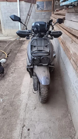 Описание: - Городской скутер с внедорожным стилем: высокий передний щиток, дуги, дополнительный багажный кофр сзади и верхняя площадка под сумку спереди. - Двигатель: бензиновый, вариатор CVT. Просторное двухместное сиденье, ровная площадка для ног. - Жесткий задний кофр с интегрированным стоп-сигналом. - Боковые площадки/подножки для пассажира. - Цвет: серо-графитовый. Подходит для ежедневных поездок по городу и загороду, оборудован для перевозки багажа и установки навигации.
