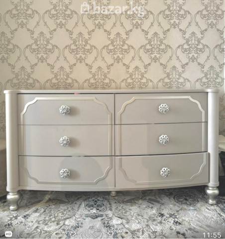 Продается качественный спальный гарнитур «Вена» белорусского производства. Прочный, аккуратный, современный дизайн. Отлично подойдет для квартиры или дома! Состояние почти новое! Без дефектов! Современный дизайн, смотрится очень достойно! В комплект входит: ✔️Кровать 2.0✖️1.8м, матрас полуортопед ✔️Шкаф для одежды 3.1✖️2.2✖️0.6м ✔️Комод с зеркалом 1.4✖️0.9✖️0.5м ✔️Тумбы 2 шт 📍Находится в г.Ош 🚚 Самовывоз 💰Цена 195. тыс сом. Разумный торг при осмотре. Причина продажи - переезд.