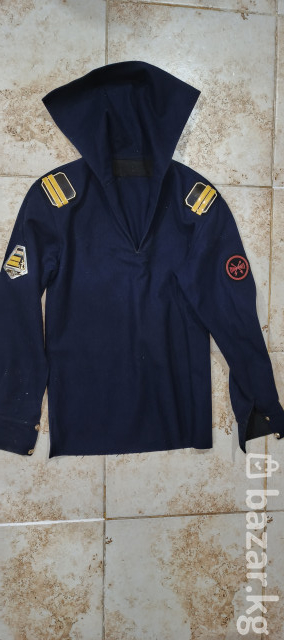 ОРИГИНАЛ Антиквариат Набор военно-морской одежды (3 предмета): 1990г.выпуск СССР 1) Темно‑синее шерстяное китель с нашивками на плечах и рукаве. - Погоны с жёлтыми нашивками. - На рукаве круглая эмблема. - Золотистые металлические пуговицы с якорем. 2) Темно‑синий костюм - Прямой крой. - Накладные карманы спереди. - Застёжка на пуговицы. 3) Ярко‑синяя рубашка с коротким рукавом. - Хлопок или лён - Классический воротник, планка на пуговицах. - Нагрудный накладной карман. Цвета: темно‑синий и ярко‑синий. Материалы по виду: шерсть или кашемир (китель), хлопок или лен (костюм и рубашка). Размеры 50. Подходит рост до 175см. вес до 72кг.