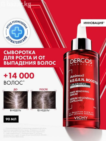 На основе 30 лет исследований лаборатории Виши разработали технологию против выпадения волос. Сыворотка Деркос Аминексил Клиникал Риджен уменьшает выпадение волос и помогает росту уже существующих волос. Сыворотка усилена 1,5% аминексила и 3% ревитализирующей эссенции с экстрактом имбиря и ниацинамида для активности клеток с клинически доказанной эффективностью: +14 000 ВОЛОСИН¹. Средство помогает уменьшить выпадение волос, придает +68% объема³ для более густых волос. Волосы становятся толще³ и в 2 раза крепче⁴. Сыворотка уменьшает ощущение дискомфорта, жжения и зуда кожи головы. Средство имеет специальную пипетку для точного нанесения на кожу головы. Имеет легкую формулу, которая мгновенно впитывается. Не оставляет следов и ощущения жирности на коже головы. Подходит для чувствительной кожи головы. ¹Клиническое исследование, 40 женщин и 37 мужчин, 5 применений/неделя в течение 12 недель. Инструментальный тест. ²Существующие волосы. ³Инструментальный тест, после использования средства. ⁴Инструментальный тест, после использования шампуня Деркос Энерджи+ и сыворотки Аминексил Клиникал Реген Бустер.