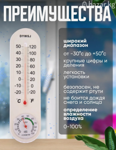 Измеряет влажность воздуха Спиртовой термометр Измеряет температуру воздуха Шкала: Цельсий(C) и Фаренгейт(F) В термометре находится подкрашенный спирт. Изготовлен без применения ртути. Совершенно безопасен. Показывает температуру в Цельсиях (С) и Фаренгейтах (F). Диапазон: от -40 до 50 С. от -40 до 120 F. Измеряет влажность воздуха: от 1 до 100. Изготовлен из пластика. #ТермометрГигрометр #Термометр #Гигрометр #ИзмерениеТемпературы #ИзмерениеВлажности #ТемператураВДоме #ВлажностьВДоме #КлиматКонтроль #ДомашнийКлимат #ТермометрДляДома #ГигрометрДляДома #ТермометрЭлектронный #ГигрометрЭлектронный #ПриборДляИзмерений #КонтрольВлажности #КонтрольТемпературы #КомнатныйТермометр #КомнатныйГигрометр #ТоварыДляДома #ПолезныеПриборы