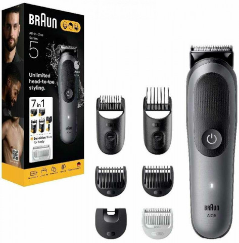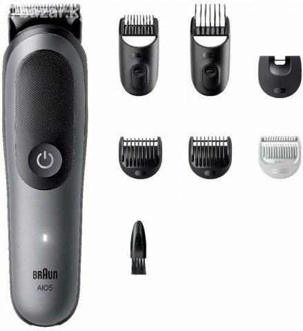 Триммер электрический AIO5520 MS Grey - это многофункциональное устройство для комплексного ухода за внешностью. Он подходит для стрижки бороды, волос на голове и теле, а также для точного контурирования и ухода за усами и бакенбардами. Основная информация Цвет серый; черный Назначение триммера универсальный Питание Питание от аккумулятора Тип аккумулятора Li-Ion Время зарядки аккумулятора 5 мин Дополнительная информация Время работы от аккумулятора (мин) 120 мин Страна производства Китай Комплектация Триммер, документация, зарядное устройство, щеточка; насадки-гребни 1 и 2 мм, насадка-гребень 3-11 мм, насадка-гребень 13-21 мм; насадка для детального стайлинга, насадка для тела Технические особенности Способ бритья сухое+влажное Тип двигателя техники для стрижки вибрационный Системы безопасности влагозащита Доп. опции триммера влагозащитный корпус; влажная очистка Насадки Количество насадок в комплекте 6 насадок Насадки для бритья; для стрижки Настройки длины Минимальная длина стрижки, мм 1 мм Количество настроек длины 16 Материалы Материал лезвий металл Материал корпуса пластик Габариты Вес с упаковкой (кг) 0.38 кг Длина упаковки 11 см Высота упаковки 26 см Ширина упаковки 6 см