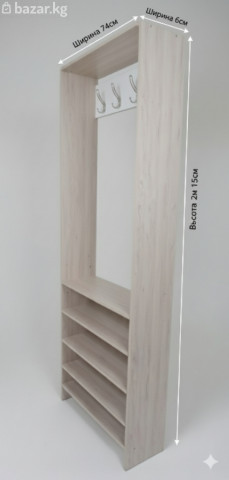 Компактная Прихожая 2-в-1: Вешалка и Обувница Идеальное решение для прихожих, где важен каждый сантиметр! Эта вертикальная стойка объединяет все необходимое для быстрого порядка: * Секция для курток: Широкая (74 см) открытая ниша с четырьмя металлическими крючками – быстрый доступ к повседневной верхней одежде. * Открытая обувница: Пять вместительных полок внизу для аккуратного хранения всей вашей обуви. Благодаря высоте 2 м 15 см и узкой боковой панели (6 см), она максимально эффективно использует вертикальное пространство. Светлый оттенок "под дерево" визуально расширит ваш коридор.Экономит место и помогает организовать пространство. * Габариты: Высота 215 см. * Верх: Открытая вешалка (Ширина 74 см) с 4 крючками. * Низ: Обувница с 5 открытыми полками. * Цвет: Светлое дерево.