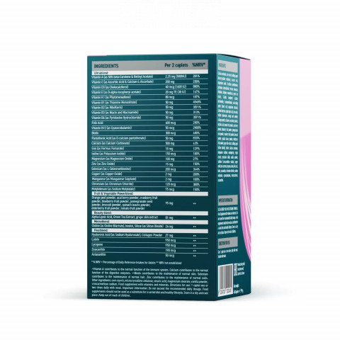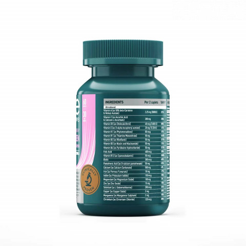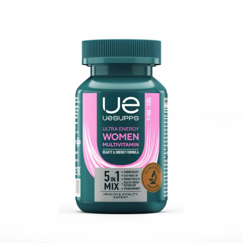 Комплекс витаминов для женщин Ultra Energy Women Multivitamin Formula разработан компанией UESUPPS специально для женщин. Этот суперкомплекс включает в себя более 50 наиболее важных для здоровья и женской красоты ингредиентов, которые обеспечивают баланс витаминов и микроэлементов, сглаживают влияние стрессов, наполняют энергией и жизненной силой. Продукт прекрасно подойдет жительницам мегаполиса, которые постоянно испытывают потребность в витаминах и минералах для легкого пробуждения, правильного метаболизма, стойкого иммунитета, женского здоровья и красоты. Упаковка включает в себя 60 или 90 каплет. Преимущества: Витамины А, С, D3, Е, K1, В1, В2, В3 (ниацин), В5, В6,В7 (биотин), В9 (фолиевая кислота), В12 в составе комплекса системно оздоравливают женский организм и препятствуют возникновению дефицитов. Ключевые микроэлементы цинк, магний, кальций, йод, хром, железо, кремний и другие повышают иммунитет, поддерживают нервную систему, улучшают память, внимание, состояние кожи и волос. Экстракты фруктов, ягод и овощей замедляют процессы старения, снижают тягу к сладкому. Гиалуроновая кислота и коллаген уменьшают износ суставов и связок, стимулируют сглаживание мелких морщин, возвращают коже тонус, упругость, увлажненность и эластичность. Прием комплекса способствует общему улучшению самочувствия и настроения, здоровому режиму сна и чувству бодрости в течение дня. Способ применения: взрослым по 1-2 таблетке 1 раз в день во время еды, не разжевывать, запивать водой. Продолжительность ежедневного приема - 1 месяц. Упаковка коробка, банка Страна ОАЭ Производитель Ultra Energy Supplements Trading L.L.C Количество порций 30 Категория Витамины и минералы Штук в упаковке 60 Для кого Для женщин Цель Укрепление иммунитета, Сохранение молодости Состав Карбонат кальция, кукурузный крахмал, носитель (микрокристаллическая целлюлоза), L-аскорбиновая кислота, оксид магния, пантотенат D-кальция, гидрохлорид пиридоксина, фумарат железа, рибофлавин, мононитрат тиамина, экстракт зеленого чая, D-альфа-токоферилацетат, никотинамид, L -селенометионин, агенты антислеживающие (стеариновая кислота, стеарат магния), битартрат холина, альфа-липоевая кислота, оксид цинка, гиалуронат натрия, порошок апельсиновой корки, порошок коллагена, кальций-L-аскорбат, инозитол, никотиновая кислота, порошок томатов, порошок ягод асаи, порошок плодов черники, порошок семян граната, порошок плодов клюквы, порошок брокколи, порошок листьев шпината, порошок плодов бузины, экстракт кожуры винограда, носитель (диоксид кремния), кошерный карбонат кальция, моногидрат сульфата марганца, ретинилацетат, калий йодид, порошок ванили, стабилизатор (кроскармеллоза натрия), оксид меди, бета-каротин, ликопин, лютеин, фолиевая кислота, биотин, зеаксантин, хлорид хрома, молибдат натрия, цианокобаламин, холекальциферол, астаксантин. ВкусНатурал