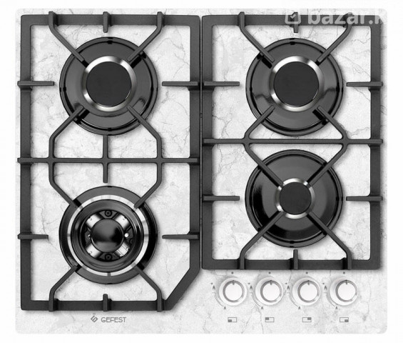 Общие характеристики Тип подключения Газовый Количество зон приготовления 4 Цвет модели Белый Дизайн Мрамор Материал варочной поверхности Стекло Материал решеток варочной поверхности Чугун Двухзонная горелка варочной поверхности Да Газ-контроль горелок стола Да Электророзжиг горелок стола Розжиг встроен в ручки Таймер Нет Функции управления Индикация включения и выключения Нет Управление конфорками стола Механическое "Фиксированное положение ""малое пламя"" Да Аксессуары Комплект сменных сопел Да Накладка для посуды малого диаметра Да Решетка варочной поверхности 2 Уплотнительная лента 1 Фильтр 1 Технические характеристики Диапазон номинального напряжения сети, В 220-230 Масса (нетто/брутто), кг 13,5 / 14,5 Номинальная частота сети, Гц 50 Размеры монтажного проема, ШхГ, см 55,4 х 48,6 Ширина, см 60 Глубина, см 52,5 Высота, см 10