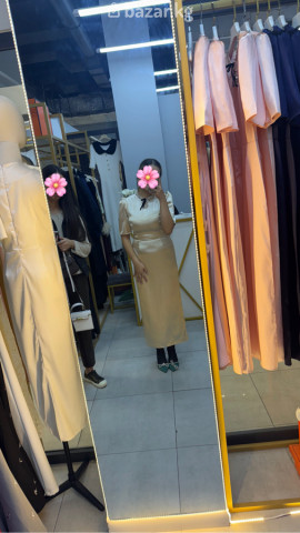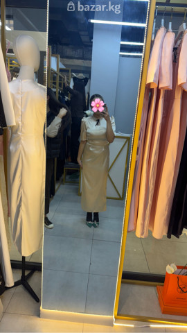 Атласное платье миди цвета шампань. - Фасон: приталенное, длина миди до щиколотки, прямой силуэт. - Верх: круглый вырез, короткие рукава с легким объемом на плечах. - Детали: акцент на талии за счет широких боковых вставок/пояса, небольшая декоративная черная лента у горловины. - Ткань: гладкий атлас с мягким благородным блеском. - Застежка: молния сзади (видна на манекене). - Посадка: подчеркивает талию, визуально вытягивает силуэт. - Подходит для: торжеств, выпускного, вечерних мероприятий, свиданий. Нежный оттенок и лаконичный крой легко сочетаются с минималистичными украшениями и классическими туфлями. Продаю новое платье, размер M (44). Абсолютно новое, с бирками, ни разу не надевала — не подошёл размер.