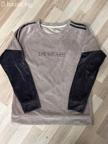 • Состояние: 8.5/10 (Отличное; без потертостей и выцветания). • Функциональность: 10/10 (Идеальная вышивка, манжеты держат форму). • Бренд: The Proper. • Размер: XL. • Цвет: Двухцветный (серый и угольный). • Материал: Мягкий велюр премиум-класса. • Особенности: Вышивка на груди, логотип «R» на рукаве, лампасы на плечах. • Крой: Свободный/Уютный.