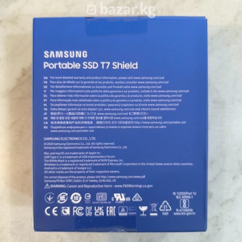 Samsung T7 Shield – защищённый внешний (переносной, портативный) SSD-накопитель, который является улучшенной и более надёжной версией T7. Модель отличается защитой от пыли, воды (IP 65) и падений. Это модель - лучший выбор для тех, кто ищет производительность и надежность от Samsung плюс защищенность от внешних воздействий. Новый, оригинальный, запечатанный. Характеристики: Ёмкость: 4 ТБ Скорость (чтение/запись): 1050/1000 МБ/с Интерфейс: USB 3.2 Gen 2 Шифрование: AES 256 бит, защита паролем Протокол UASP: Поддерживается Материал: металл с резиновым кожухом Защита: IP65 от воды и пыли, падений с высоты до 3 м Совместимость с ОС: Windows, Mac, Linux, Android, Ios (с 15х iPhone) Размеры: 88*59*13 мм Масса: 98 г Цвет: черный Комплектация: сам SSD, кабель USB-C на USB-A, кабель USB-C на USB-C Пожалуйста, прочитайте внимательно! Это не магазин. Я - частное лицо. Вещи у меня единичные. Нет гарантии, нет возврата, нет обмена. Времени на проверку не предоставляется. Проверка возможна при самовывозе или до отправки, после полной предоплаты (если доставка). Торг не уместен, все цены окончательные. По вопросам пишите на Ватсапп. Оставляйте именно текстовые сообщения, звонки и голосовые могут быть пропущены. Просьба, пишите с 9:00 до 21:00