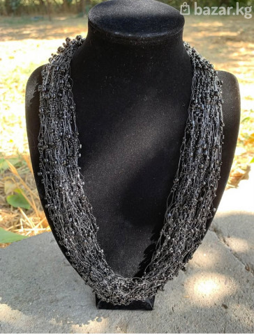 Воздушное колье из черного бисера и мелких черных бусин.