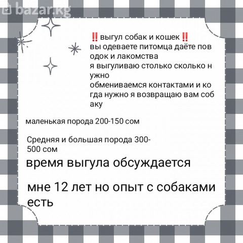 +996503336161 выгул собак и кошек все условия на фото прошу к прочтению ‼️ стоимость зависит от породы пожалуйста не звоните а пишите, так я отвечу гораздо быстрее