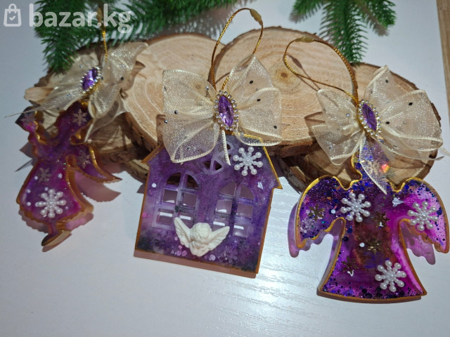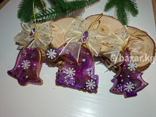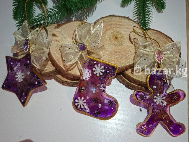 ёлочные украшения подвеска ручной работы 13 штук из эпоксиднрй смолы