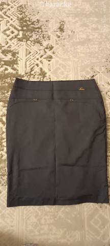 Юбка-карандаш темно-синего (почти черного) цвета. - Прямой силуэт до колена, классическая посадка на талии. - Плотная костюмная ткань с небольшим эластичностью. - Сзади разрез для удобства ходьбы. - Декоративные строчки по линии бедер, небольшие заклепки, аккуратные имитации карманов спереди и сзади. - Небольшой металлический логотип/нашивка “Lida” у пояса. - Застежка сбоку на молнию (не видна спереди). - Универсальная модель для офиса, школы, деловых мероприятий и повседневных образов.