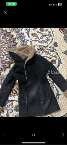Женская дублёнка AKYÜZ DERİ Размер XS-S - Цвет: наружная сторона – чёрная/графит матовая, внутри – тёплый бежевый мех. - Материал: натуральная овчина (мех и дублёная кожа/замша снаружи). Плотный, мягкий ворс, равномерная стрижка. - Крой: прямой полуприлегающий силуэт до середины бедра. - Застёжка: асимметричная металлическая молния. - Детали: широкий тёплый отложной воротник-капюшонного типа, можно поднимать к шеe; подвороты на манжетах с мехом; боковые прорезные карманы; декоративные швы. - Теплозащита: густой мех по всей внутренней части изделия, включая рукава и воротник. - Брендовая нашивка внутри: AKYÜZ DERİ. Стильная и тёплая дублёнка для холодного сезона, хорошо сочетается с повседневными и более нарядными образами.
