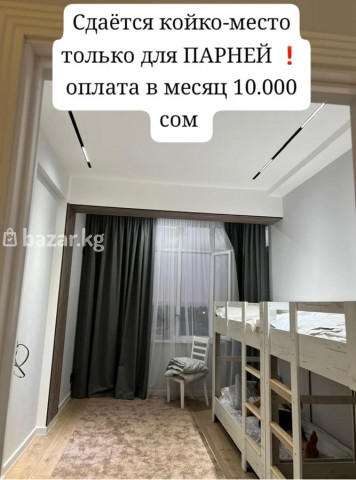 Освободилась только <1> место. » КОЙКА !!!Сдаётся койко-место для работающего парня. Ищем чистоплотного, порядочного и платежеспособного жильца на длительный срок. 📍 Адрес: ул. Салиева / ул. Чкалова 🚶 До остановки — 1 минуты пешком 🏠 Есть всё необходимое для комфортного проживания 💰 Оплата — за койку 10тыс+депозит 5000сом В стоимость входят: ✅ Коммунальные услуги ✅ Постельные принадлежности ✅ Wi-Fi ✅ Уборка