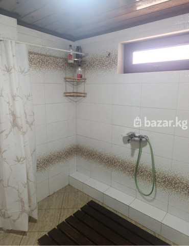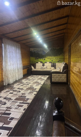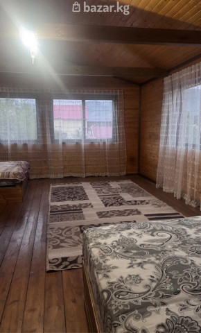 ПИСАТЬ НА WhatsApp +996779647170 Сдается посуточно уютный загородный дом с террасой и просторной крытой беседкой МАКСИМУМ 12 ЧЕЛОВЕК - Дом двухэтажный с мансардой: верхняя часть отделана деревом, кровля из металлочерепицы. Большие окна на мансарде. - Просторная открытая терраса из дерева с ограждением — зона для отдыха и завтраков на свежем воздухе. - Крытая беседка/летняя кухня во дворе: капитальные опоры, деревянный потолок, декоративное освещение по периметру, столы и лавки. Подходит для семейных ужинов и встреч с друзьями. - Озеленённый двор: хвойные деревья, кустарники, газон, цветники. Вечерняя подсветка участка. - Плиточное покрытие двора — удобно для парковки и прогулок, аккуратные дорожки. - Отдельный вход в дом, окна на несколько сторон, спокойный вид на зелень. - Кухня внутри: отделка деревом, рабочая стенка в плитке, столешница с мойкой, варочная поверхность, шкафы для хранения. Яркое светодиодное освещение. - Дополнительные элементы: деревянные садовые лавки, декоративные перегородки на террасе. Идеальное место для жизни и отдыха на природе: сочетание камня и дерева, много света, развитые уличные зоны для круглогодичного использования.
