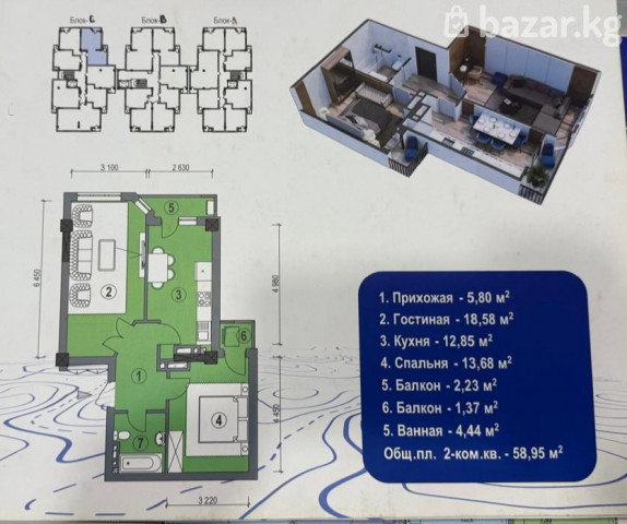 2-х комнатная квартира в мкр Восток-5 по Чую