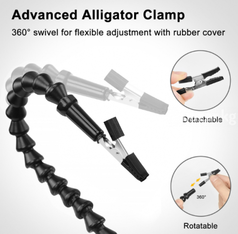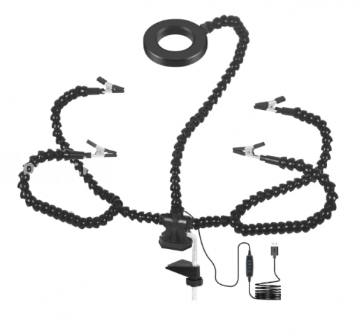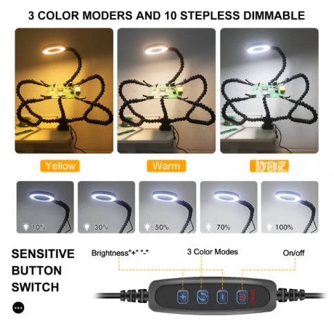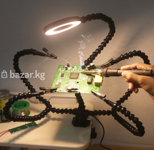 Материал нижнего зажима: пластик Длина трубы универсального шарнира: 90 + 270 мм /300 мм Многократное увеличительное стекло: 5-кратное увеличительное стекло Диаметр увеличительного стекла: 55 мм SN5BK-USB (467g) черный с 5 клешнями: Размер упаковки:14.5*14.5*9.5 Картонная упаковка Вес: 446,5 г 3S5BK-USB: Размер упаковки:40.5*20*1 Упаковка в полиэтиленовый пакет Вес: 400 г характерный: 1.Базовый зажим: компактный, удобный в переноске, без рук. 2. Регулируемый зажим: вращение на 360 градусов, прост в эксплуатации. 3.Гибкий рычаг: Y-образный гибкий рычаг, малый вес, устойчивость к давлению, хорошая стабильность 4.Увеличительное стекло со светодиодной подсветкой, цветовая температура светодиодной подсветки регулируется на 3 передачах, а яркость - на 11 передачах в соответствии с различными условиями работы. 5.Подходит для чтения работ / компьютерной платы / изготовителя ювелирных изделий / энтузиастов ремесел / сварочных переделок, может быть использован. #третьярука #держатель #держательдляплаты #держательдляпайки #инструмент #радиомонтаж #пайка #паяльник #работасэлектроникой #электроника #ремонт #ремонттехники #сборкаплат #хобби #домашняямастерская #мастерская #умелыеруки #лупа #подсветка #юсбпитание #проводноюсб #удобно #практично #инструменты #аксессуары #полезнаявещь #идеядляподарка