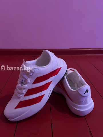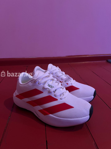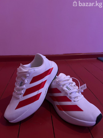 Кроссовки Adidas adizero (беговые) -Цвет:белый с красными полосками -Верх: легкая дышащая сетка с текстурой рипстоп -Шнуровка классическая, язычок с логотипом Adizero -Подошва: амортизирующая платформа с выраженным перекатом , промежуточная пена Lightstrike Pro -Носок с защитной накладкой, пятка с фирменным логотипом - Легкая модель для тренировок и быстрых пробежек