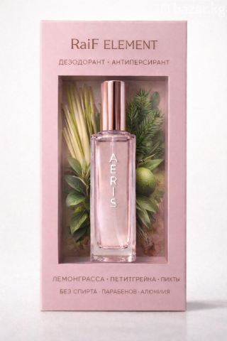 Натуральный дезодорант-спрей без спирта, парабенов и алюминия. Не блокирует потовые железы — нейтрализует причину запаха. Лёгкий, свежий, природный. ✅ Без алюминия ✅ Без спирта ✅ Без парабенов ✅ Подходит для чувствительной кожи ✅ Унисекс ✅ Компактный формат 20мл — удобно носить с собой Состав: дистиллированная вода, алюмокалиевые квасцы, глицерин, консервант, эфирные масла (лемонграсс, петитгрейн, сибирская пихта). Производство: Бишкек, Кыргызстан Бренд: RaiF Element https://raif.love/ 📦 Доставка по Бишкеку и КР 💳 Оплата: наличные / перевод