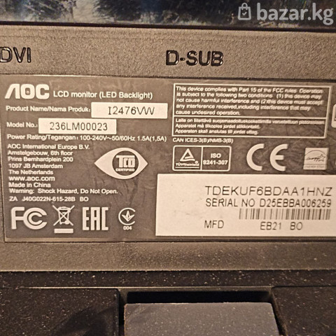 AOC i2476Vw Диагональ 23.6" (59.9 см) Максимальное разрешение дисплея 1920x1080 (FullHD) Тип матрицы ADS-IPS Контрастность дисплея 1000:1 Интерфейсы 1 x DVI, 1 x VGA Шнур VGA, В комплекте Цена: 5500 Сом ✅Монитор можно закрепить на кронштейн или повесить на стену, есть отверстия для крепления. ✅Доставка по городу 150-300сом а так же в регионы ✅Для быстрого заказа ответа пишите Whatsapp ✅График работы 10.00 до 22.00 Без выходных №650