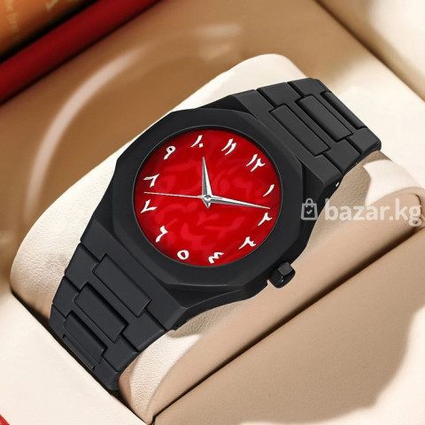 Элегантные часы с выразительным дизайном для тех, кто ценит индивидуальность. Глубокий красный циферблат с восточными (арабскими) цифрами придаёт модели уникальный характер, а строгий чёрный корпус подчёркивает современный стиль. Преимущества: Яркий красный циферблат — эффектный и легко читаемый Восточные цифры — необычный и запоминающийся дизайн Прочный чёрный корпус и металлический браслет Точный кварцевый механизм Универсальный стиль: подойдёт как к повседневной, так и к классической одежде Характеристики: Тип механизма: кварцевый Материал корпуса: металл Материал браслета: металл Цвет корпуса: чёрный Цвет циферблата: красный Застёжка: надёжная металлическая Отличный вариант для подарка 🎁 или для тех, кто хочет выделиться и подчеркнуть свой вкус.