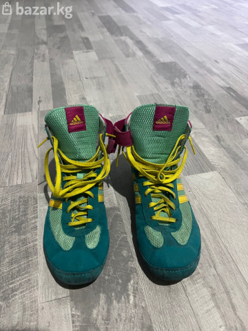 - Борцовки Adidas(высокие) - Тип: борцовки для греко-римской борьбы и для вольной борьбы. - Логотип Adidas на язычках и пятках. - Лёгкие, хорошо облегает стопу, обеспечивает поддержку голеностопа и свободу движений. - Подойдут для тренировок и соревнований по борьбе. - Размер обуви:42,5
