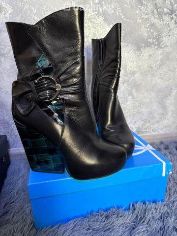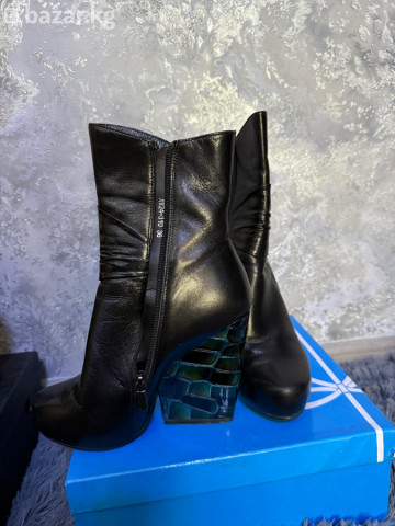 Интересный каблук с зелеными вставками Сбоку бант Натуралки Кожа