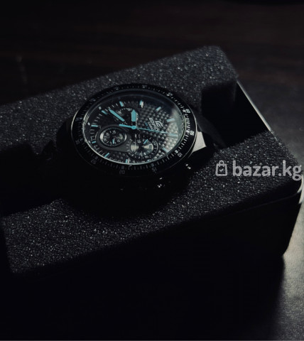 CASIO Edifice (Quartz) – мужские наручные часы в спортивно-классическом стиле. ОРИГИНАЛ❗️❗️ Основные характеристики: - Кварцевый механизм. - Аналоговый циферблат с тремя дополнительными субциферблатами (24‑часовой формат, секундомер/хронограф, минутный счетчик). - Безель с минутной разметкой. - Темный циферблат с карбоновым/сотовым узором и контрастными светло‑голубыми метками и стрелками. - Люминесцентные элементы на стрелках и индексах для считывания в темноте. - Корпус из нержавеющей стали. - Минеральное стекло. - Кнопки управления хронографом на правой стороне корпуса. - Черный ремешок из натуральной кожи с классической пряжкой. - В комплекте фирменная коробка с защитным поролоном. Подойдет для повседневной носки и делового стиля, сочетает функциональность хронографа и строгий дизайн Edifice.