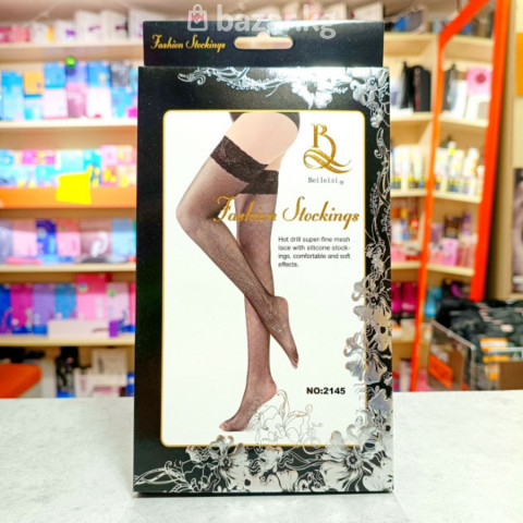 Каждый момент станет особенным, если на Вас будут эти потрясающие блестящие чулки. Изюминка модели - россыпь страз и широкая кружевная резинка с силиконом. Благодаря ей, чулки женские надежно фиксируются на ноге, а также отлично подходят под пояс. Классическая, не короткая и не слишком высокая посадка, оставляет бедра почти полностью открытыми, что пробуждает сексуальные фантазии. Ажурные вставки сделали изделие еще более красивыми, а сетчатый дизайн в клетку - невероятно возбуждающим.