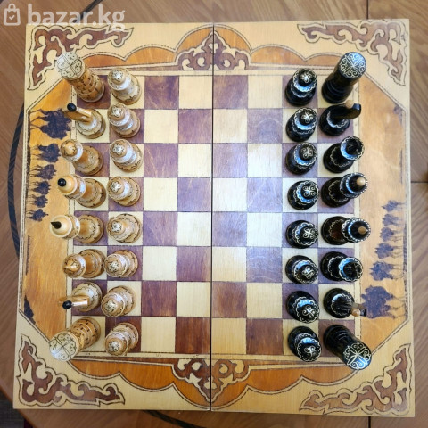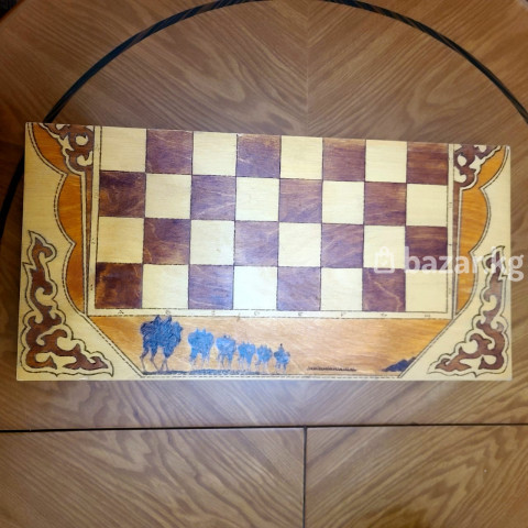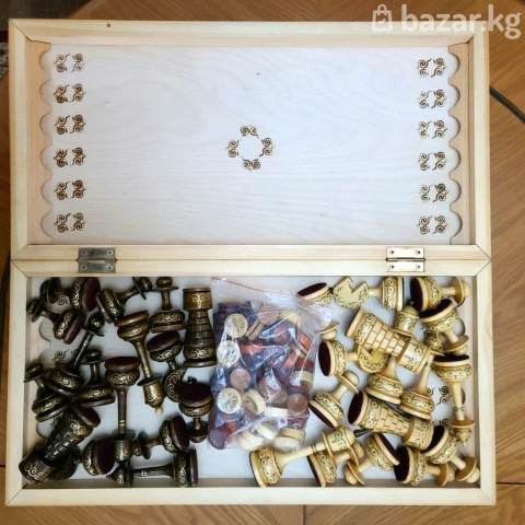 Деревянные шахматы, шашки, нарды в этническом стиле.