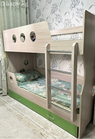 Продаётся стильная и функциональная двухъярусная кровать в отличном состоянии. Идеальное решение для детской комнаты — экономит пространство и создаёт уютную атмосферу ✨ 🛏 Преимущества: • Надёжная и устойчивая конструкция • Удобная лестница с металлическими перекладинами • Бортики на верхнем ярусе для безопасности • Вместительные выдвижные ящики внизу для хранения белья, игрушек или одежды • Современный дизайн в светлом древесном оттенке с зелёными фасадами Подойдёт для двух подростков или для организации дополнительного спального места. Состояние хорошее, использовалась аккуратно. Самовывоз.