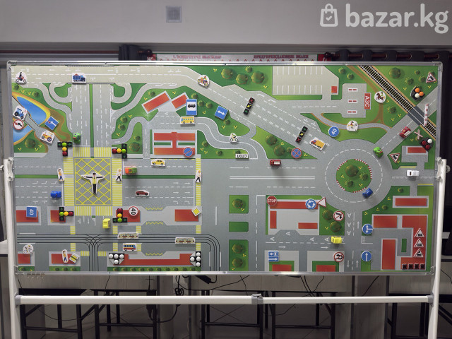 Доска предназначена для учебных и презентационных целей — особенно актуальна для автошкол, учебных классов и тренингов. Одна сторона — схема дорожного движения в городе Другая сторона — белая магнитно-маркерная поверхность для записи и крепления материалов