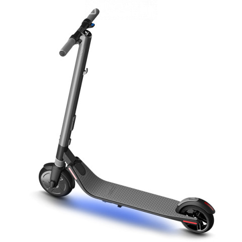 Электросамокат Ninebot KickScooter ES1 Ninebot KickScooter ES1 от компании Xiaomi — это прекрасная возможность добираться до работы, ехать обратно домой без пробок или даже просто отправится в магазин с комфортом, и при этом соблюдать активный образ жизни. Это удобное средство передвижения, которое не займет много места и благодаря которому можно быстро и легко передвигаться по улицам города. Также электросамокат можно использовать как обычный самокат толчкового типа, что еще полезнее для здоровья, т.к. это является своего рода тренажером для тонуса и поддержания всех мышц в форме. Конструкция Электросамокат имеет удобную складную конструкцию. Сложить его можно всего лишь с помощью одной педали. На рулевой стойке имеется специальный крючок для фиксации в сложенном виде. Общий вес составляет всего 11,3 килограмм. Поэтому, если нужно проехать в метро или на автобусе его легко можно сложить и перевезти, никому при этом не мешая. Также устройство легко помещается в багажник любого автомобиля. Вся конструкция выдерживает максимальный вес в 100 килограмм. LED экран Устройство оснащено светодиодным круглым дисплеем, на котором отображается скорость передвижения, наличие соединения по Bluetooth, уровень заряда аккумулятора и режим питания. Дисплей очень простой и понятный, и оснащен одной кнопкой для управления: Одно короткое нажатие на кнопку и устройство включится. Одно короткое нажатие при включенном состоянии — включится фара. Одно более длительное нажатие при включенном состоянии — устройство выключится. Если быстро нажать на кнопку два раза подряд — меняется скоростной режим. Несколько скоростных режимов Ninebot KickScооter ES1 имеет три режима скорости: Эконом: скорость и тяга ограничены, на дисплее не отображается. Стандарт: функция настройки параметров, отображается на дисплее белым цветом. Спорт: скорость и тяга максимальные, отображается на дисплее красным цветом (max скорость 20 км/ч). Высококачественные шины Конструкция оснащена двумя литыми колесами с безвоздушными шинами. Колеса имеют разные диаметры: переднее колесо размером 8 дюймов, а заднее — 7,5 дюймов. Также заднее колесо обладает возможностью ножного торможения. Два аккумулятора Ninebot KickScooter ES1 оснащен мощным аккумулятором с емкость в 5200 мА·ч, что позволяет без проблем передвигаться в течении всего дня до 25 км. Этот аккумулятор имеет быструю зарядку — полный заряд всего за 3,5 ч. А также конструкция может быть оснащена вторым дополнительным аккумулятором, который удобно размещается на рулевой стойке и продлит поездку до 45 км. Освещение в темное время Передвигаясь на электросамокате в темное время суток, а также в условиях не высокой видимости необходимо включить фару для безопасности самого пользователя и других участников дорожного движения, а также пешеходов. Располагается фара на верхней части рулевой стойки и имеет мощность 1,5 Ватт.