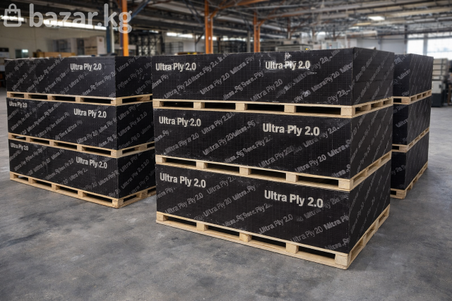 Фанера ламинированная Ultra Ply 2.0 Описание: - Инженерные листы фанеры с фенольной ламинацией с обеих сторон. - Поверхность: гладкая, износостойкая, с влагостойкой пленкой темного цвета и разметочной сеткой. - Кромки защищены водоотталкивающей пропиткой. - Подходит для многократного использования в опалубке, а также для пола в прицепах/фургонах, настилов, подиумов, стеллажей, рабочих столов и т.п. - Высокая прочность на изгиб и стойкость к влаге, скольжению и истиранию. - Ровная геометрия листа для точной подгонки и чистого реза. Возможные форматы/толщины: - Стандартные крупноформатные листы (видно на фото паллет). - Толщины — ассортимент промышленного назначения (опалубка, настилы); уточняйте нужную толщину и раскрой. Преимущества: - Долговечное покрытие, легко очищается от бетона. - Минимальная деформация при нагрузках. - Готова к применению без дополнительной обработки поверхности. - Удобна в транспортировке и хранении на паллетах. Применение: - Монолитное строительство (палуба/ригели/балки). - Полы и настилы с повышенными нагрузками. - Производство тары, сцены, подмости, кузовостроение. Дополнительно: - Возможен раскрой в размер и подбор количества листов под проект.