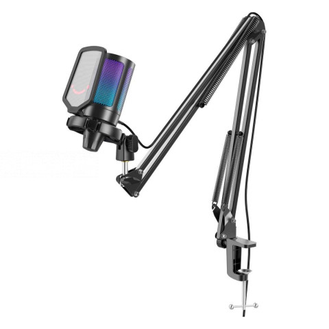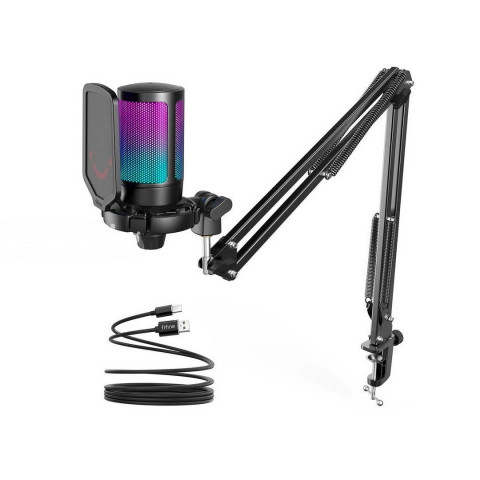 Fifine A6T – студийный конденсаторный USB микрофон с регулируемой подставкой и поп фильтром. Градиентный RGB и быстрое отключение звука — при двухцветном освещении RGB самостоятельно изменяет семь цветовых режимов градиентным способом. Он добавляет атмосферу карнавала с подсветкой компьютерных настроек, помещая вас на арену жестокой игры. Кнопка быстрого отключения звука вверху удобна. Даже если вы сосредоточитесь на игре, вы можете сразу отключить микрофон. RGB отключен, когда микрофон отключен, чтобы сообщить вам рабочий статус. Избегайте несчастных случаев при потоковой передаче из-за того, что вы забыли отключить микрофон. Наслаждение ярким голосом — игровой микрофон, разработанный для геймеров с микрофоном, предлагает частоту дискретизации 192 кГц, обеспечивая реальный звук. Сделайте так, будто вы и ваши товарищи по команде играете бок о бок. Кардиоидный конденсаторный микрофон чутко улавливает фронтальный звук. Ваши друзья могут четко слышать ваш звонок, независимо от того, играете ли вы на PS5 или на ПК, что упрощает получение чемпиона. Удобство использования — ручка усиления внизу обеспечивает быстрый доступ. Если игровой звук влияет на ваш голос, вы можете мгновенно отрегулировать громкость микрофона, вместо того, чтобы кричать товарищам по команде или понижать собственный голос. Винт с накатанной головкой на амортизаторе позволяет заранее наклонить под наилучший угол записи потокового видео, что позволяет получить приятную позу при разговоре во время игр или потоковой передачи. Удобная установка — этот настольный игровой микрофон plug-and-play совместим с PS4 / 4pro / 5 и ПК. Вы можете быстро войти в игровой чат. USB-кабель можно плотно подключить к разъему type-c на микрофоне. Во время игр с высоким уровнем стресса вы больше не будете страдать от прерывания игрового чата. Съемный USB-кабель длиной 6,6 футов может проходить от задней части компьютера до корпуса микрофона без каких-либо ограничений. Полезные аксессуары — Резиновые резинки прочно закреплены на амортизаторе, что снижает вибрационный шум, вызываемый сильными ударами по клавиатуре и щелчком мыши. Съемный поп-фильтр плотно закреплен на амортизаторе и не упадет. Он может устранить треск, издаваемый вашими захватывающими словами во время игры. Характеристики Цвет товара черный Футляр в комплекте без футляра Тип микрофон проводной, микрофонный комплект, конденсаторный / электретный Тип микрофона конденсаторный, Настольный Назначение для компьютера, для конференций, для подкастов/радио/телевидения, для стриминга, студийный, для стриминга и гейминга Конструкция микрофона настольный, подвесной, стационарный Диаграмма направленности микрофона кардиоидная Чувствительность -40 дБ Мин. частота 60 Гц Макс. частота 18000 Гц Отношение сигнал/шум 70 дБ Питание по USB Разъем микрофона USB, USB Type-C Особенности RGB-подсветка, кнопка отключения микрофона Материал корпуса металл Длина кабеля 2 м Подробная комплектация Микрофон со встроенным пауком/ Поп-фильтр/ Кабель Type-C — USB/ Крепление к столу/ Пантограф/ Руководство пользователя Дополнительная информация приглушение микрофона (mute)