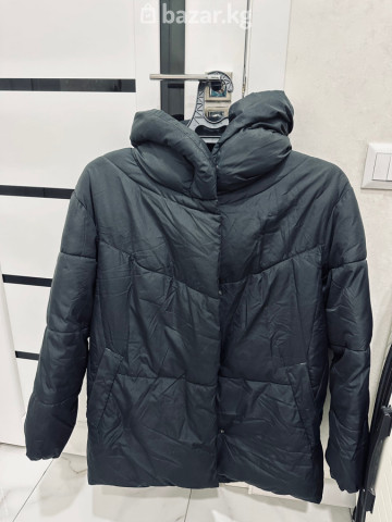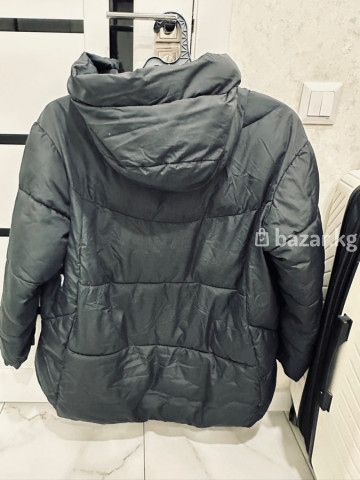 Утеплённая женская куртка-пуховик темно‑серого цвета. - Прямая посадка, длина до середины бедра - Объёмный несъёмный капюшон - Вертикальная простёжка с диагональными линиями спереди - Застёжка на кнопки/скрытую планку, имеется ремень - Два удобных боковых кармана - Материал верха — плотная водоотталкивающая ткань (на фото с лёгким сатиновым блеском) - Тёплый синтетический наполнитель - Подходит для поздней осени и мягкой зимы - Цвет: графит/тёмно‑серый Лаконичный базовый дизайн, хорошо сочетается с джинсами и повседневной обувью. Размер ориентировочно средний (см. посадку на плечиках и длину по фото).