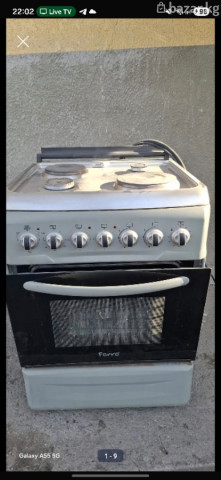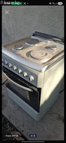 Кухонная плита Ferre, комбинированная (газ + электро) Газплита Газовая плита Комбинированная электрическая Ferre механическая газ плитка ПОЛНОСТЬЮ РАБОЧАЯ. духовка с обдувом. работает отлично (плохо закрывается дверь от духовки.) - Варочная поверхность: 4 конфорки, из них 2 электрические «блины» и 2 газовые. - Механическое управление: отдельные поворотные ручки для каждой конфорки и духовки. - Духовка: электрическая, с подсветкой и несколькими режимами нагрева (верх/низ), регулятор температуры с градацией, индикаторы работы. - Комплектация духовки: два противня на направляющих. - Материал панели: металл/нерж. сталь; крышка-экран сзади. - Ширина корпуса — стандартная для напольных плит. - Цвет: светло‑серый с черной дверцей духовки.