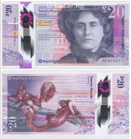 Банкнота 20 фунтов стерлингов, Royal Bank of Scotland (RBS), полимер. В наличии: ✅ - Номинал: £20 (Twenty Pounds Sterling). - Эмитент: Royal Bank of Scotland plc. - Материал: полимер. - Дата на банкноте: по приказу совета директоров 27 мая 2019 года. - Размеры и цветовая гамма: фиолетово‑лиловые тона, вертикальные и горизонтальные элементы дизайна. - Лицевая сторона: портрет писательницы Нен Мэкивен (Nan Shepherd), здание штаб-квартиры в Эдинбурге, цитаты, голографические и прозрачные элементы, многоуровневая защита, микропечать. - Оборот: изображение двух красных белок на ветке, надписи “Royal Bank of Scotland” и “Twenty Pounds Sterling”. - Защитные признаки: прозрачное «окно» с фиолетовым элементом, оптико‑переменные детали, сложная металлизированная полоса, микротекст, серийный номер, контрастные элементы для машинного и визуального контроля. Сохранность: UNC (Uncirculated): Без обращения, идеальное состояние, острые углы, чистая бумага. ❗На фото представлен пример. Серия и номер могут отличаться. ❗ Данная банкнота оригинал и имеет признаки подлинности. 💰 Оплата принимается: С $ € £ 📌 Купить банкноту можно за евро-монеты. Подходит для коллекционеров банкнот Великобритании и современных полимерных выпусков, а также для демонстрации защитных технологий RBS. ❕ Объявление будет удалено или деактивировано после продажи.