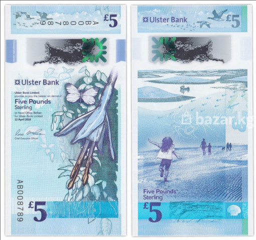 Полимерная банкнота Ulster Bank £5 (Northern Ireland), выпуск 12 апреля 2018. В наличии: ✅ Описание: - Номинал: Five Pounds Sterling (£5). - Эмитент: Ulster Bank Limited (Белфаст). - Материал: полимер. - Серия с вертикальной ориентацией. - Серийный номер на лицевой стороне. - Дизайн и элементы: - Лицевая сторона: ботанические мотивы, цветок, бабочка; прозрачное окно с голографическими элементами; карта Северной Ирландии и логотип Ulster Bank; водяные/прозрачные элементы защиты. - Оборот: прибрежный пейзаж и сцена на пляже, навигационные/ветровые схемы; номинал «£5» и надпись «Five Pounds Sterling». - Защитные признаки: прозрачное окно с металлическим/голографическим слоем, микротекст, серийный номер, сложные орнаменты. - Цветовая гамма: голубой/бирюзовый с фиолетовыми акцентами. - Формат: вертикальная ориентация обеих сторон. EF – «экстра файн», «eXtremely Fine» (отличной сохранности); ❗На фото представлен пример. Серия и номер могут отличаться. ❗ Данная банкнота подлинная. 💰 Оплата принимается: С $ € £ 📌 Купить банкноту можно за евро-монеты. Подходит для нумизматической коллекции современных полимерных банкнот Великобритании/Северной Ирландии. ❕ Объявление будет удалено или деактивировано после продажи.