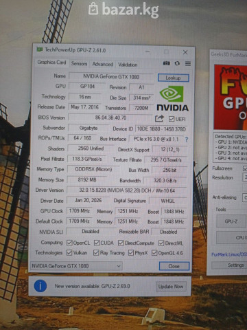 Видеокарта 8Gb <PCI-E> GDDR5X GIGABYTE GV-N1080AORUS 8GD (RTL) DVI+3xHDMI+3xDP <GeForce GTX1080> Модель: GIGABYTE AORUS GV-N1080AORUS 8GD GPU: GeForce® GTX 1080 Частота GPU: 1873 МГц максимум Видеопамять: 8 Гб Тип видеопамяти: GDDR5X Разрядность шины видеопамяти: 256 бит Подсветка видеокарты: GIGABYTE RGB Fusion Порты: 3 выхода DisplayPort, DVI-D, HDMI 2.0, 2 выхода HDMI 2.0 (для VR mode) Разъем питания: 8 pin+8 pin Цена 13 000 сом ✅ Быстрый заказ — WhatsApp ✅ Без выходных 🕒 Ежедневно с 10:00 до 22:00 🚚 Доставка по Кыргызстану: 150 - 350 cом 🌐 Сайт: www.kaufmannservices.pro №914